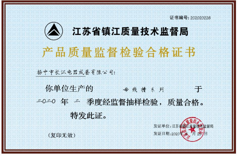 母線槽產(chǎn)品質(zhì)量監(jiān)督檢驗(yàn)合 -