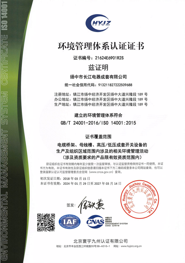 環(huán)境管理體系認(rèn)證證書 -